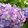 院子裡的繡球可是花團錦簇的,白的藍的粉紅的都有,繡球花也常是結婚新人的捧花呢!